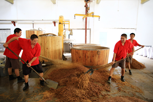 今世缘酒业北厂区是明清时期典型的的活态存在的酿酒遗址。“粉碎驴推磨、出窖柳筐抬、蒸馏烧地锅、晾醅木锨扬”是当时酿酒的真实写照。“小锨高扬”是晾醅的绝技。蒸馏是用木材烧地锅。