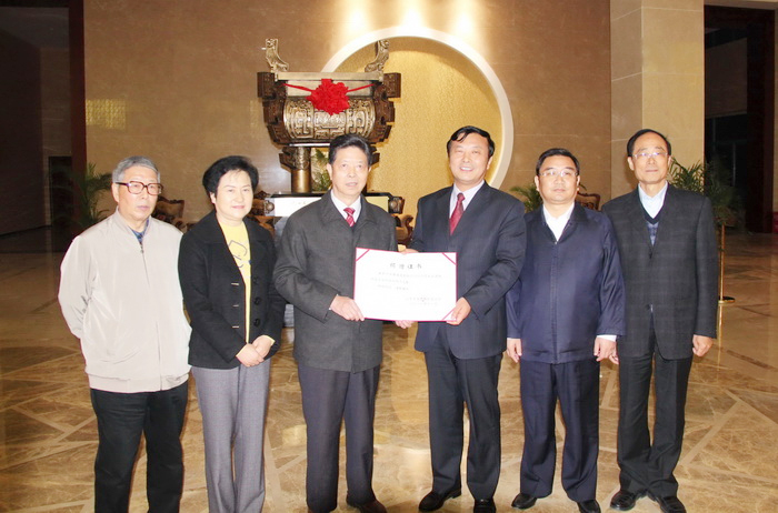 在国缘宾馆,王霞林代表江苏省法律援助基金会感谢今世缘对对基金会的支持,并向周素明颁发了今世缘向江苏省法律援助基金会捐款50万元的证书。