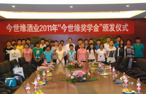 8月26日,今世缘举行2011年度职工子女“今世缘奖学金”颁奖仪式。被本科院校录取的38名职工子女领到了第一学年2000元奖学金,以后三年每学年再领1000元,共计5000元。从2007年起,共有137名职工子女获得了今世缘奖学金。