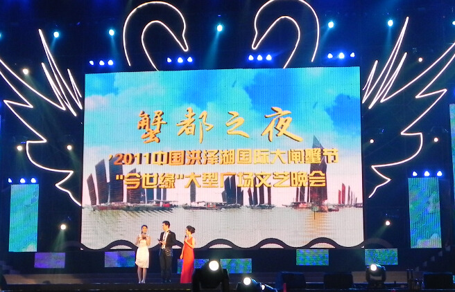 秋风起,蟹脚痒;菊花黄,蟹儿肥。9月28日晚,’2011中国洪泽湖国际大闸蟹节在美丽清纯的洪泽湖畔隆重开幕。由江苏今世缘酒业股份有限公司特别协办的蟹都之夜·今世缘洪泽湖国际大闸蟹节大型广场文艺晚会同时精彩上演,与大湖相约,为“横行”喝彩。