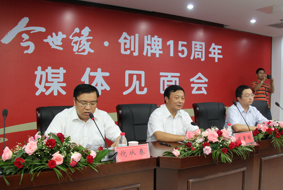在今世缘品牌15岁生日之际,8月20日,今世缘召开媒体见面会,来自中央电视台、凤凰卫视、江苏卫视等电视媒体,《新华日报》以及《淮安日报》等地方党报,《中国酒》、《糖烟酒周刊》、《华夏酒报》、《东方酒业》、《新食品》等行业媒体,新浪、搜狐、网易等网络媒体记者参加了见面会。