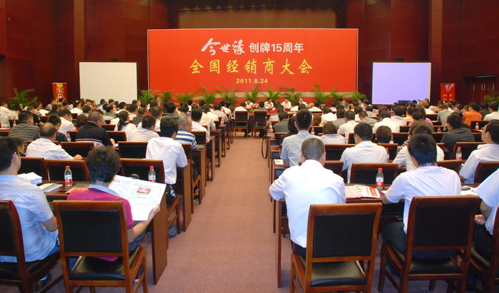 8月24日,今世缘创牌15周年全国经销商大会在新落成的今世缘会议中心召开。公司董事长、总经理周素明,党委副书记、副总经理倪从春,副总经理陆克家,总经理助理、市场部经理胡跃吾以及来自全国各地的300多名经销商参加了大会。