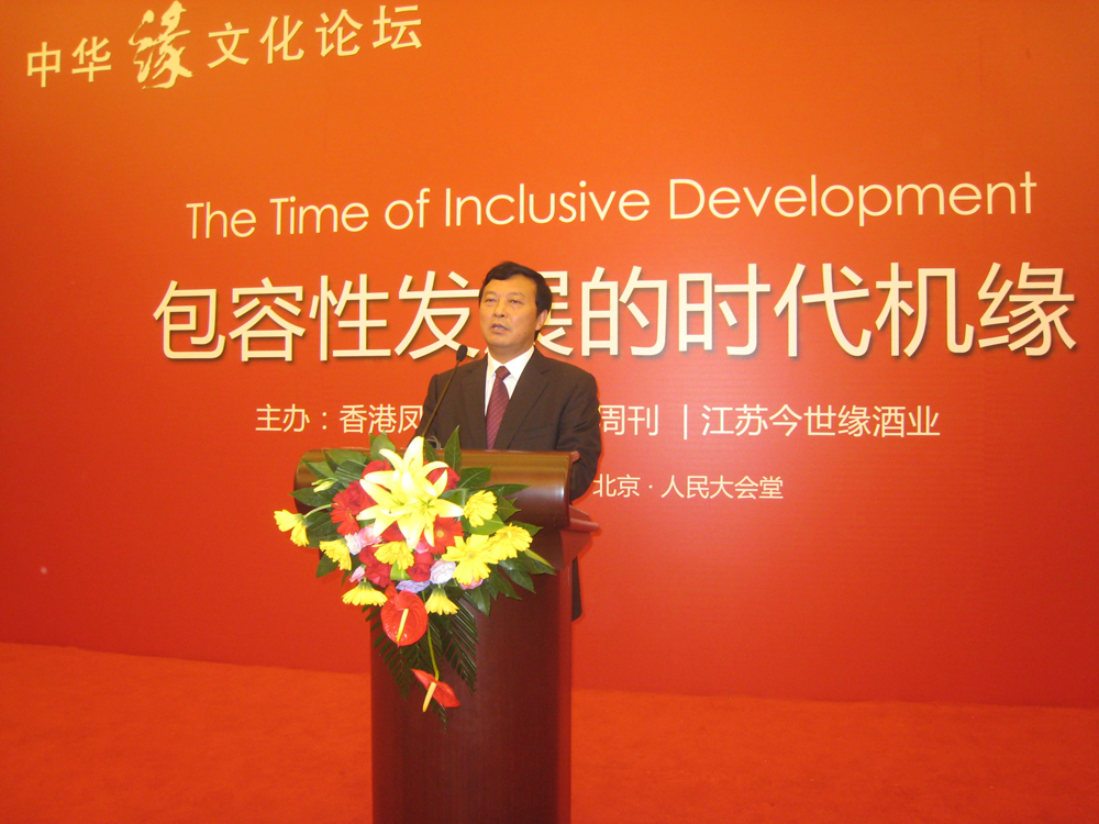 胡锦涛总书记多次在重要国际场合公开倡导包容性发展,引起了广泛关注和热议。在全球经济一体化、世界价值多元化的今天,包容性发展理念的提出具有非常重要的现实意义,它为快速崛起的中国提供了发展的机缘,指明了前进的方向。包容性之于世界是一种和平,之于社会是一种和谐,之于城市是一种发展。与会嘉宾作了精彩的主题演讲,以“缘”为切口,深入剖析国际国内热点问题,提出了如何实现包容性发展的新思路和新观点。曾晓东结合日本大地震、核辐射以及国内发生的一些污染事件,从环境友好型社会发展角度谈包容性发展;张曙光从宏观经济角度谈论了后经济危机时代的包容性发展;张鸣从中国历史角度谈缘文化与发展之间的关系;孙谦从包容性发展的时代机缘与现代媒体社会责任角度谈包容性发展。