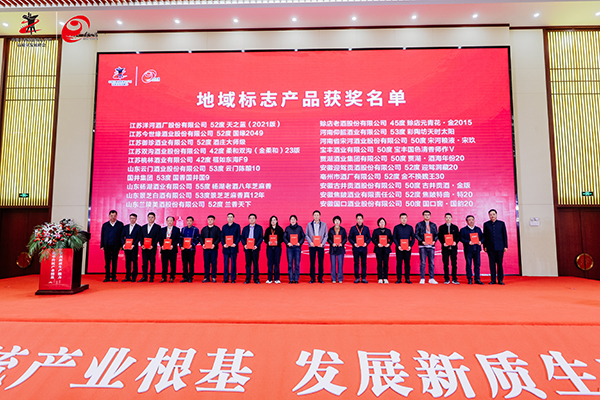 在峰会上,还举行了表彰、颁奖仪式。与会专家和白酒国家评委对四省向峰会推荐的本省代表性的白酒产品进行了感官质量品评。根据品评结果,20个产品获得“2024年度中国白酒黄淮核心产区高质量发展峰会地域标志产品奖”,20个产品获得“2024年度中国白酒黄淮核心产区高质量发展峰会典型风格产品奖”。