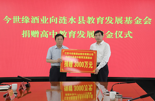 2024年6月8日,今世缘酒业向涟水县教育发展基金会捐赠高中教育发展基金仪式举行。