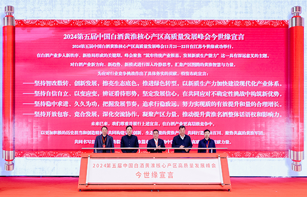 2024年11月22日,第五届中国白酒黄淮核心产区高质量发展峰会《今世缘宣言》发布。