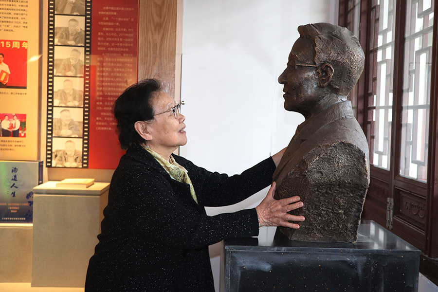 感受阳光的味道,追忆共同的岁月。短暂的时间,金老陪同沈老走过一生,仍然意犹未尽。“来,让我与老头子照张相。”在沈老的铜像前,阳光洒进窗棂,熠熠生辉。金老久久抚摸着、凝视着,这样的爱、这样的眼神,一生相伴,穿越时空,这半个多世纪的爱情并没有画上句号。(企业文化部)