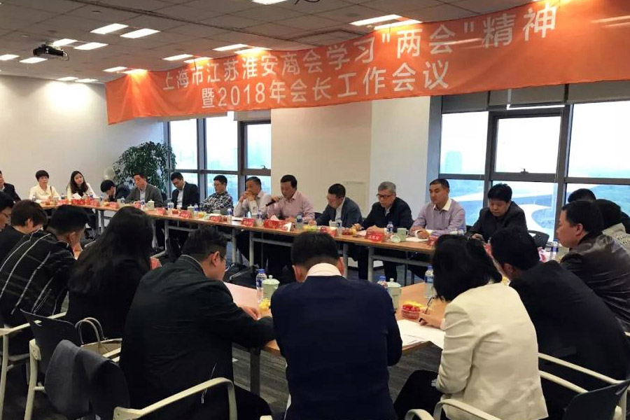 4月14日,上海市江苏淮安商会2018年第一次会长工作会议在由由世纪广场1号楼会议室召开。上海市江苏淮安商会会长薛加玉,秘书长姜晓华,副秘书长余治平等出席会议。