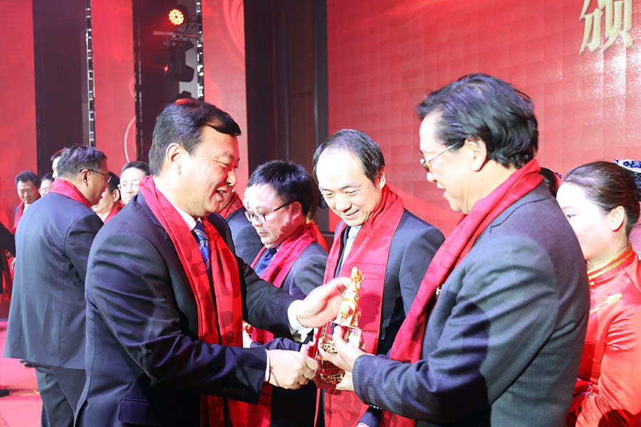 颁奖盛典上,赏心悦目的舞蹈《高沟酒缘》,激情澎湃的威风兄弟演绎的歌曲串烧,生机勃勃的军中三兄弟表演的杂技《力量与技巧》,国粹与现代流行相结合的反串歌曲,公司员工倾力打造的热情欢快的舞蹈《把爱酿成酒》,充满惊险刺激的模仿秀《人体通电》,主持人宋旭演唱的充满怀旧情怀的《那年》,网络歌手冷漠演唱的网络流行歌曲《没有你陪伴真的好孤单》,“人类和平使者”云菲菲演唱的《今世有缘》,冷漠、云菲菲合唱的《这条街》,以及公司员工张建高演唱的《感谢》,为现场的观众上演了一场缘份深深、感恩浓浓的视听饕餮盛宴,不时燃爆嘉宾们的掌声与喝彩声。最后,女高音歌唱家吴春燕精心演唱的《不忘初心》和《新时代之歌》等歌曲为盛典的胜利落幕画上圆满句号。