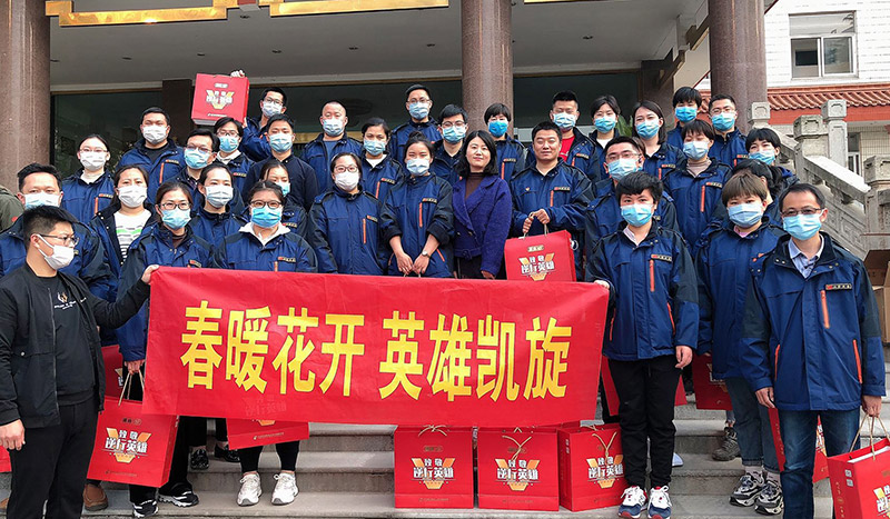 美酒与英雄有缘,鲜花与掌声相迎。4月13日,最后一批撤离武汉的江苏援湖北医疗队回到江苏。至此,江苏省从1月25日起先后派出的13批22支医疗队全部返苏。今世缘酒业为每位凯旋英雄赠送特制美酒国缘V9,并送上慰问信,致敬医者仁心,为英雄干杯祝捷。