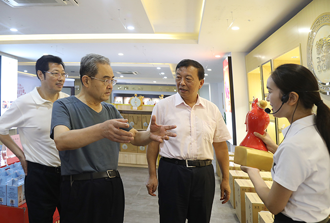 在今世缘美酒银行,季允石了解文创产品开发销售情况。