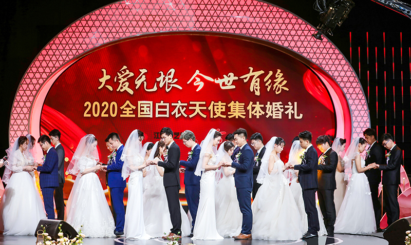 ● 2020年5月20日,今世缘酒业为抗击疫情推迟婚期的白衣天使举办集体婚礼。