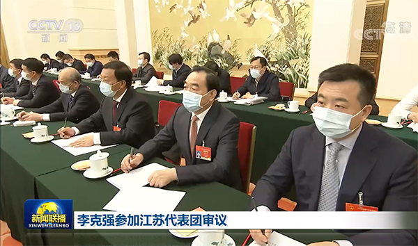 3月7日下午,中共中央政治局常委、国务院总理李克强参加十三届全国人大四次会议江苏代表团审议。强调继续奋发进取,迈出更大步伐,在推动高质量发展中更好发挥作用。今世缘董事长周素明(前排右三)同代表们一起审议政府工作报告。