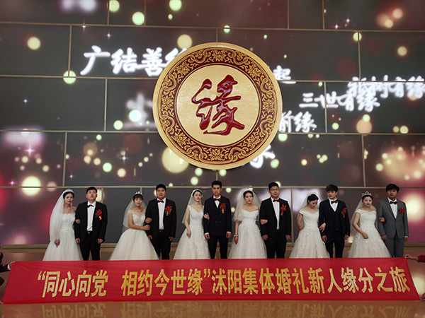此次集体婚礼由中共沭阳县委宣传部、沭阳县文明办、沭阳县妇联、共青团沭阳县委主办,今世缘酒业对活动全程支持。参加集体婚礼的100位新人用特殊的方式表达了对党的热爱和对爱情的忠贞之情。