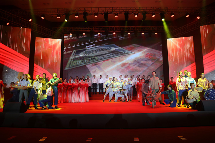 活动现场,庆祝中国共产党成立100周年大型情景歌舞《酿造未来》浓情上演,节目共分为《特殊党产》《艰苦创业》《凤凰涅槃》《世纪放歌》《酿造未来》五个篇章,综合运用多种艺术手段,以盛大恢弘、波澜壮阔的红色乐章为党的百年华诞献礼,生动展现今世缘“党费建厂”的红色历史,奋力描绘高沟酒厂在艰苦创业中走向崛起的壮美画卷,热情讴歌新世纪以来今世缘在创新变革中实现精彩跨越,昂首阔步迈向酒缘大业新征程。文艺演出在全场共同高唱《没有共产党就没有新中国》的嘹亮歌声中落下帷幕。