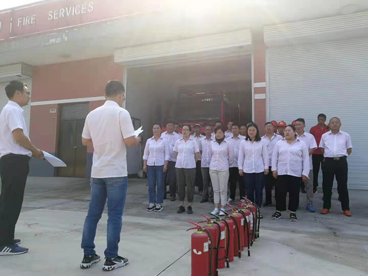 6月22日上午,仓储物流中心组织装卸队、运输队、成品库、物资库、五金库、大宗原料库等30多名员工开展消防安全演练。