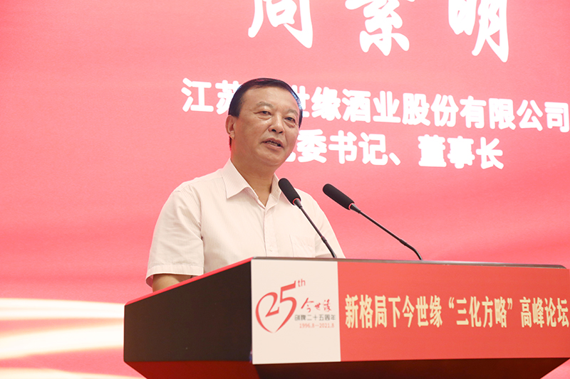 周素明在论坛上表示,今世缘酒业是因缘而生,随缘而盛的企业。自1996年8月创牌以来,今世缘人卧薪尝胆,直面挑战,与时俱进,肩负“酿美酒,结善缘”的使命,践行“讲善惜缘,和谐发展”的核心价值观,以缘兴酒,以酒结缘,在各级领导、社会各界以及相关方关心支持下,通过公司上下不懈奋斗,谱写了波澜壮阔的创业之歌。2014年在上交所主板上市。相继荣获“全国文明单位”“全国质量奖”“全国五一劳动奖状”“全国模范职工之家”等荣誉。企业生产规模越来越大,装备水平越来越强,厂区环境越来越美,呈现出市场态势越来越好、发展质量越来越高的良好局面。