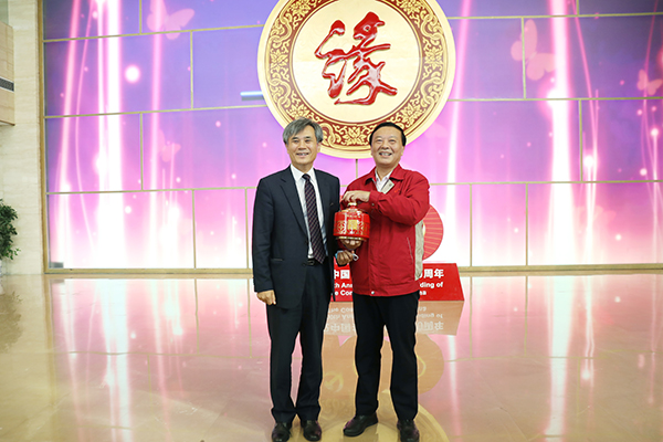 在今世缘展示中心,周素明向金胜镐赠送了象征“缘聚”的“国缘100”定制纪念酒。在企业文化板块前,金胜镐对于今世缘企业文化表示高度赞许,用中文将今世缘愿景读了出来。在得知今世缘支持全国大型公益寻人类节目《今世缘·等着我》,为20000多个求助者实现了缘聚。金胜镐高兴地表示,在韩国也有这样的寻人节目,感人至深,很受观众欢迎。