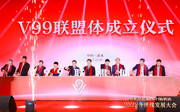 12月29日上午,在2022今世缘发展大会上,江苏今世缘酒业股份有限公司发起组建的“V99联盟体”正式成立,38家经销客户成为首批成员单位。今世缘酒业党委副书记、副董事长、总经理顾祥悦与首批联盟体9名代表一起把醇香的国缘V9倒入启动台中,共同开启“V99联盟体”新征程。