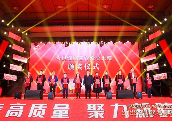 “酿美酒,结善缘”是今世缘企业使命,幸福企业建设的重要力量。也是今世缘相关方群体共同的价值追求。“在他们身上,彰显的是缘文化的感恩、人世间的博爱,今世缘人的家国情怀。希望越来越多的相关方朋友心怀天下,奉献爱心,广结善缘,知行合一,做缘文化的传播者、践行者,形成惜缘善待的良好风尚,唱响今世缘人的精神礼赞,为社会的文明进步做出更大的贡献!”在颁奖仪式上,今世缘酒业党委书记周素明说。