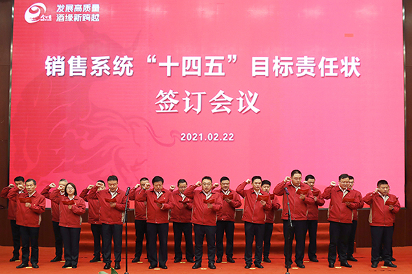 2021年2月22日,今世缘举行销售系统“十四五”目标责任状签订会议。