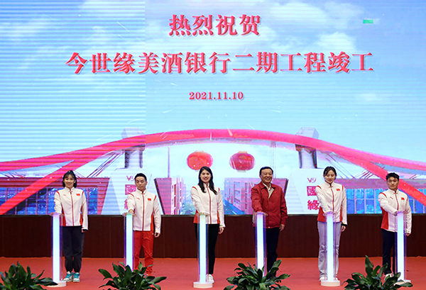 2021年11月10日,今世缘酒业党委书记、董事长周素明和东京奥运江苏健儿共同见证今世缘美酒银行二期工程竣工。