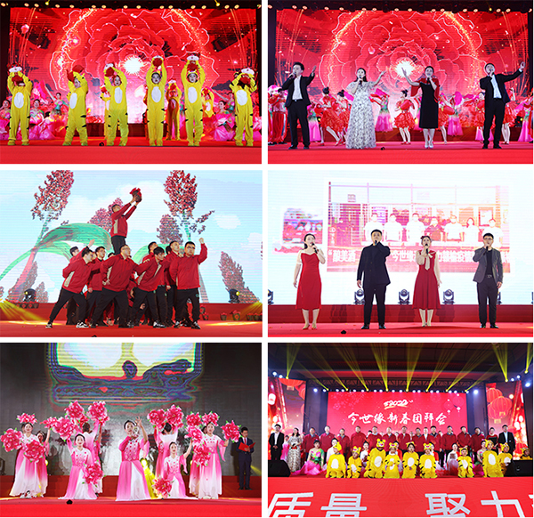 团拜会上,来自公司南京大区、质量管理部、研究院、酿酒中心、勾储中心、包装中心、文旅公司、国缘宾馆等部门的员工表演了精彩的节目。情景剧《血脉薪火》、音诗画《缘来奋斗这般甜》、情景舞蹈《丰收的喜悦》、歌伴舞《万疆》、舞台短剧《幸福今世缘》、音乐小品《今世缘欢迎你》等自编自演的节目展示了今世缘人良好的精神风貌。团拜会在歌伴舞《酿造未来》的音乐声中圆满结束。