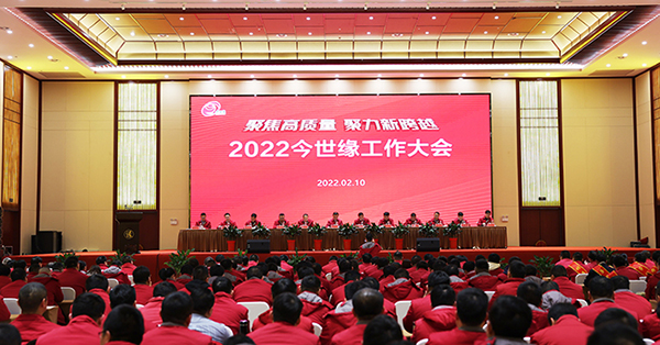 春潮声声,战鼓铿锵,催动今世缘人踔厉奋发。2月10日,今世缘酒业2022年工作大会在国缘宾馆召开,向全体今世缘人发出“虎力全开”动员令,号召公司上下高举习近平新时代中国特色社会主义思想伟大旗帜,把握宏观经济稳中求进的时代机缘,聚焦高质量,聚力新跨越,为提前实现营收超百亿而努力奋斗,以优异成绩迎接党的二十大胜利召开。党委书记、董事长周素明主持会议,党委副书记、副董事长、总经理顾祥悦作年度工作报告。