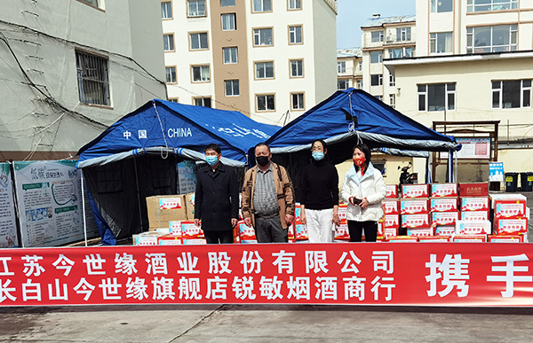 今世缘东北营销中心携手锐敏烟酒商行,前往吉林省长白山宣传部、电视台、白山社区慰问。长白山党工委宣传部部长孟凡迎说,将把企业的爱心与支持化为战“疫”动力。在辽宁,东北营销中心携手大文烟酒,慰问了阜新市海州区疫情防控指挥部、西山社区、大众社区、兴盛社区等地疫情防控人员。