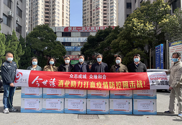 有缘守“沪”,同心抗疫。今世缘上海营销中心携手上海市企业家联合会组织采购医用口罩、免洗手消毒凝胶等抗疫物资,第一时间送到上海市慈善基金会杨浦代表处、上海市沪办大厦管理委员会,助力打赢疫情防控。在宝山,今世缘宝山办事处携手上海隽怡酒类销售有限公司,为疫情封控区域及困难群众,送去口罩、防护服以及大米、水果、蔬菜等生活物资。宝山区工商联副主席蒋宁感谢今世缘团队的帮助支持,他表示,今世缘是一个有温度、有担当的企业。我们同心战疫,一起守“沪”,一定能早日渡过难关。