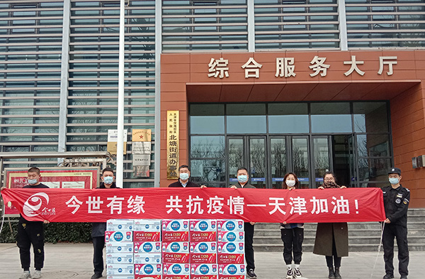 在天津,今世缘天津办事处携手当地经销商,前往天津市滨海新区北塘街道办事处、新港街道办事处和新港近开里社区慰问,叮嘱疫情防控人员做好个人防护,注意防寒保暖。