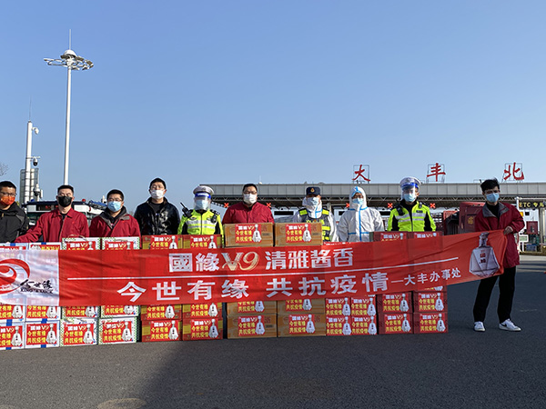 在盐城大丰,今世缘大丰办事处前往大丰开发区隔离点、大丰北高速出入口防疫点、刘庄交警中队及大中街道、白驹、草堰等重要防疫卡口,对工作在防控一线人员进行慰问,为他们送去方便面、牛奶、矿泉水、八宝粥等生活物资。
