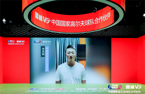 活动现场播放了专门为签约活动定制的《当国缘V9遇见高尔夫》宣传片,身处海外的中国国家高尔夫球队队员发来视频祝福。