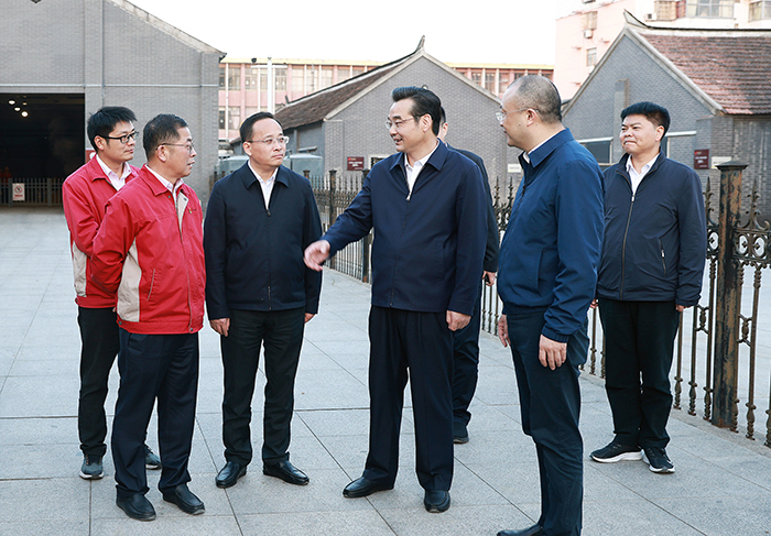 市长史志军在中国白酒智能化酿酒示范车间调研。