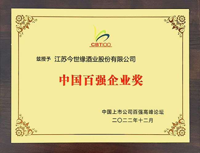 2022年12月17日,今世缘荣膺“2022年中国百强企业奖”。