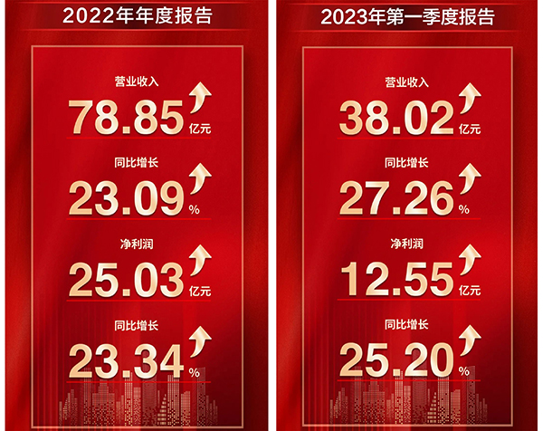 同时发布的2023年第一季度报告显示,公司一季度营业收入38.02亿元,同比增长27.26%;净利润12.55亿元,同比增长25.20%,“开门红”成色足、质量高,为全年目标奠定坚实基础。