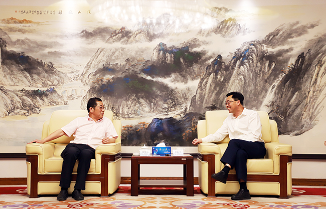 洋河股份有限公司党委书记、董事长张联东与今世缘酒业党委书记、董事长、总经理顾祥悦座谈交流。