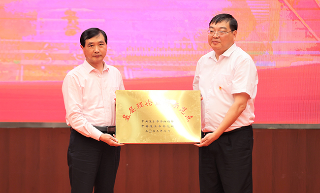 今世缘酒业党委高度重视基层理论宣讲,发挥理论宣讲“传声筒”“调频器”“放大器”的作用,开展“支部书记上党课”“身边人讲创业史”等形式多样的理论宣讲,不断推动新思想在基层落地生根,让党的声音真正“飞入寻常百姓家”,为广大党员干部学习贯彻习近平新时代中国特色社会主义思想提供有特色、有亮点、有效果的活动载体,也成为全县“基层理论宣讲示范点”。活动现场,涟水县委组织部副部长季振华为今世缘酒业“基层理论宣讲示范点”授牌,周亚东上台接受授牌。