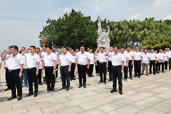 在百色起义纪念碑广场,厂商全体党员在顾祥悦带领下,一起面向鲜红党旗,高举右手,重温入党誓词。“我志愿加入中国共产党,拥护党的纲领,遵守党的章程……”誓言铮铮,铿锵激昂,表达了党员干部将百色精神转化为不忘初心、牢记使命的坚定信念以及扬帆百亿征程的信心和决心。