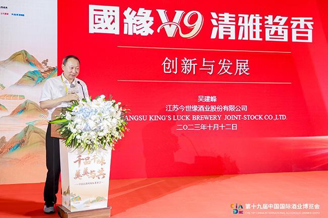 针对国缘V9获得的荣誉,今世缘酒业副董事长、副总经理、总工程师吴建峰在会上作了《清雅酱香国缘V9创新与发展》的主题分享。从感官角度来看,清雅酱香色如黄钻、晶莹剔透,香如奇楠、清雅飘逸,醇厚丰满、细腻圆润、舒适自然,慢醉、快醒,具有独特风格。这属于典型的风味创新,国缘V9的出现可以说是今世缘酒业在其风味个性化道路上树立的一座里程碑。