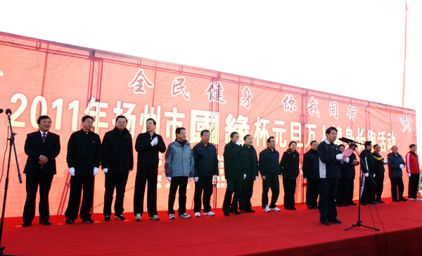1月1日上午8:30,“今世缘·国缘”元旦万人健身长跑活动在扬州广陵区、维扬区和邗江区同时启动,与此同时,江都、仪征、高邮、宝应也与市区元旦长跑联动,各自举行长跑活动。据了解,有近千个方阵参加,人数超过10万,是有史以来规模最大的一届。扬州市自1997年首次举办元旦长跑活动,已经举办14届。